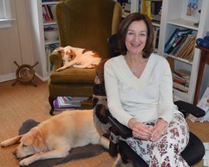 The couple operates their business from their Fairfield residence, with Richards working on back-end operations from an upstairs office while Gebbia handles her duties downstairs, occasionally joined by a pair of dogs and a cat. The four-legged staff members are crucial, she laughed, because they “help me to get up and remember to leave my desk.”